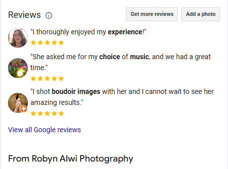 "Such an amazing experience from start to finish. Very welcoming! If you are looking for a great experience, a warm, and welcoming photographer please use Robyn."
